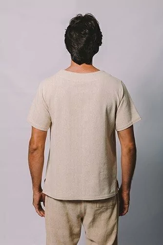 Bata masculina em tecido de algodão colorido orgânico. Modelagem reta para se adaptar aos mais variados formatos. A gola é do tipo redondo e com botões. A bata é uma boa opção para substituir as camisas e camisetas e compor um look original.