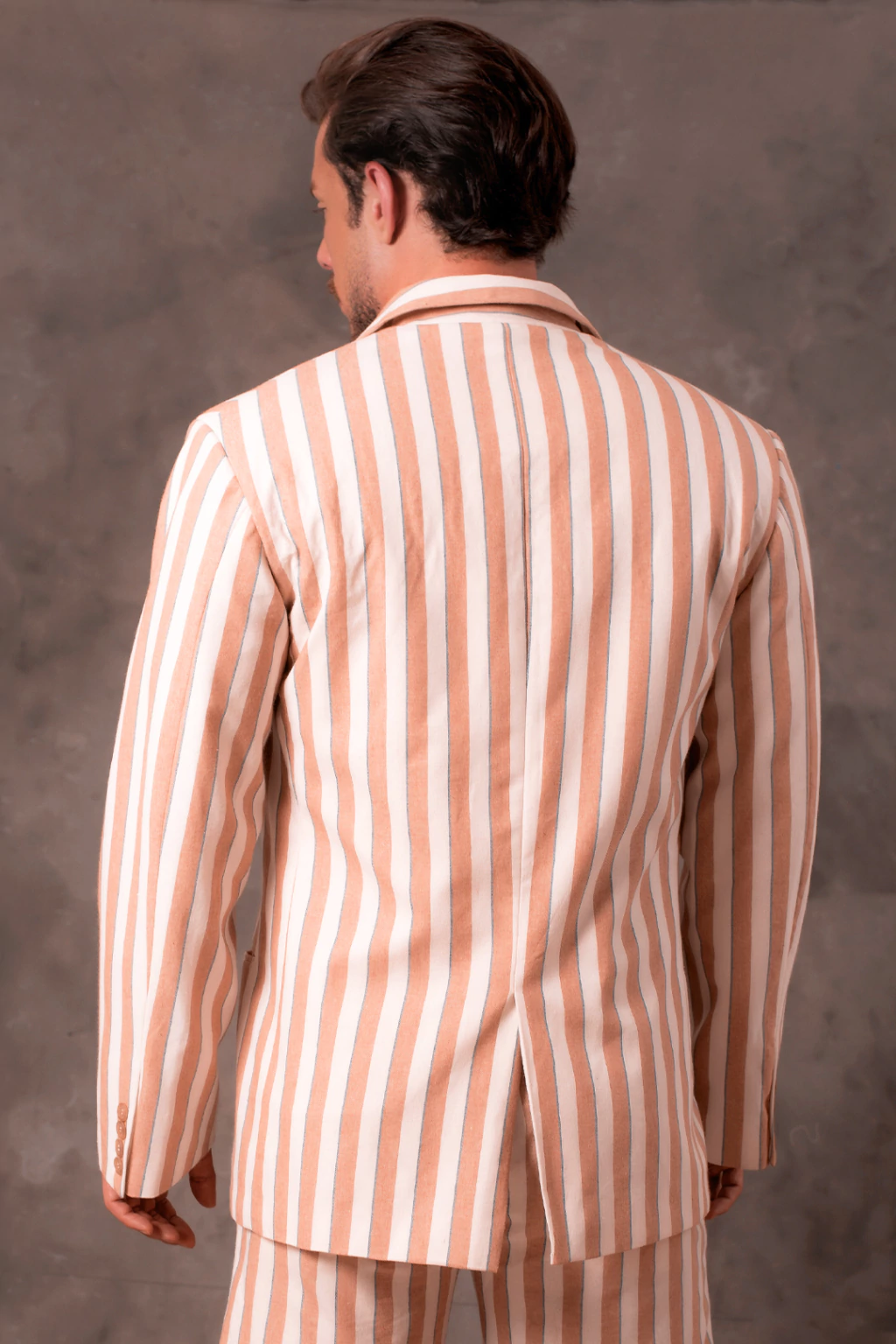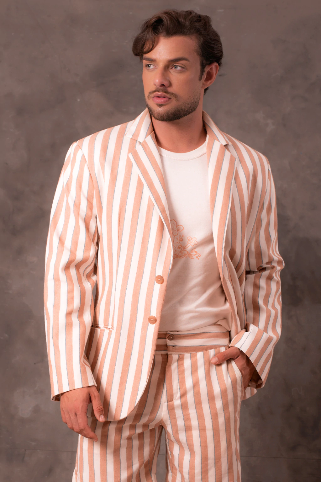 Essencial, o blazer alfaiataria reúne em listras verticais em dois tons do algodão que já nasce colorido e um tom azul feito com algodão reciclado. Com lapela Notch, mangas longas, tem abotoamento simples com fechamento frontal por dois botões e fenda na parte posterior. Um blazer clássico, ecochic e cheio de personalidade.
